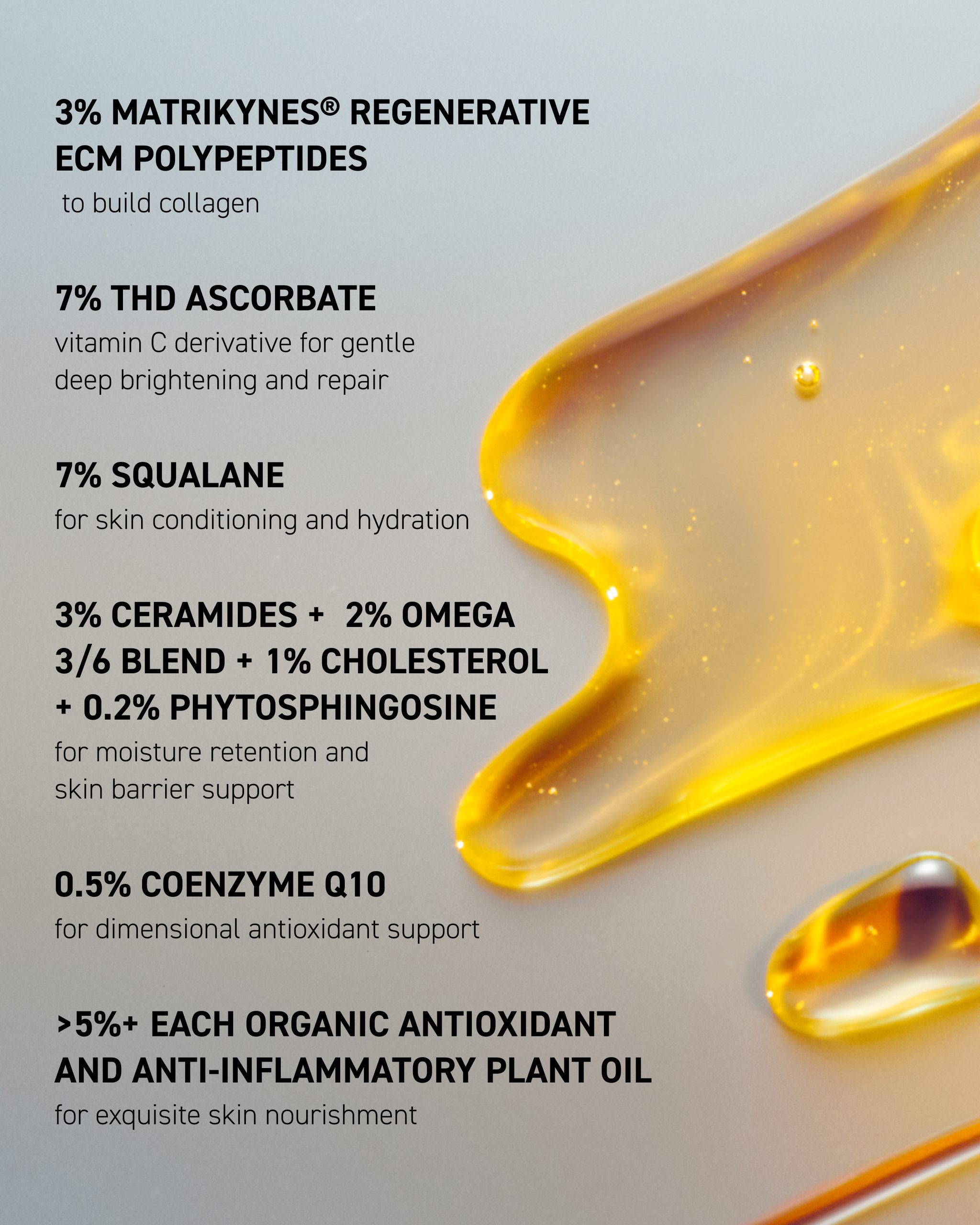 Tetrahexyldecyl Ascorbate*, Squalane, Emblica Officinalis (Amla) Fruit Extract*, Hippophae Rhamnoides (Sea Buckthorn) Seed Oil*, Punica Granatum (Pomegranate) Seed Oil*, Rosa Rubiginosa (Rosehip) Seed Oil*, Rubus Idaeus (Red Raspberry) Seed Oil*, Sambucus Nigra (Elderberry) Seed Oil*,