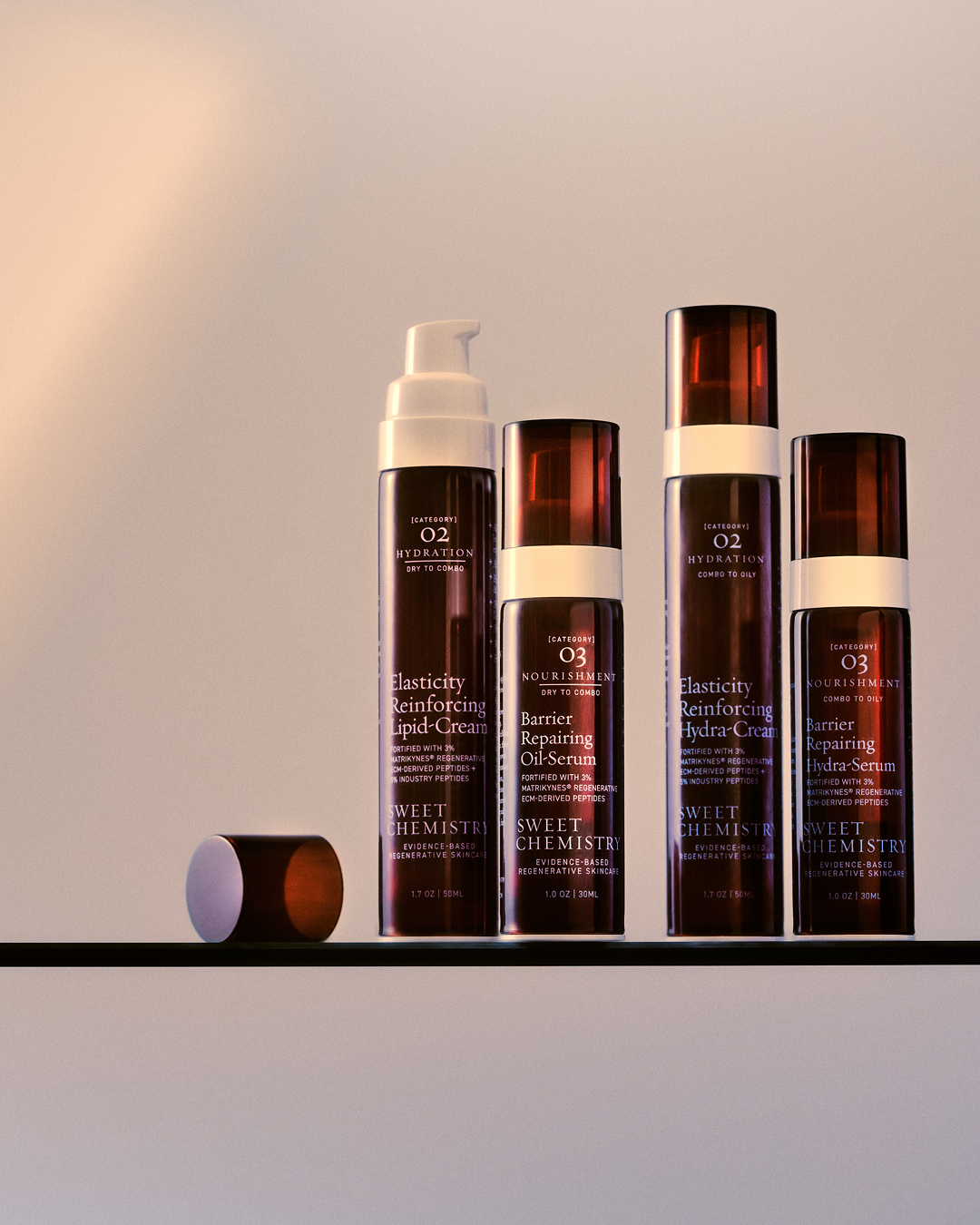 Current peptides on the market are synthetic, limiting their bioavailability to our skin. Matrikynes® are naturally derived from upcycled bone, allowing for dramatic dermal bioactivity.